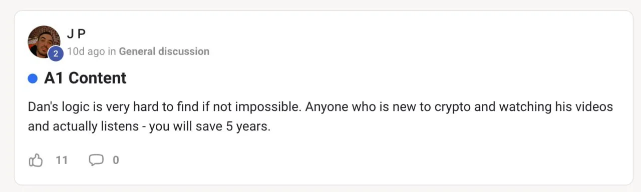 "Now that I've watched this course, I can't believe I used to listen to all the crypto youtubers for advice. This course is at another level entirely"